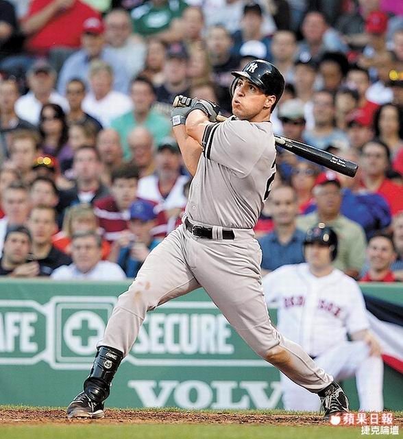 7局上,洋基史威許(Nick Swisher)先送出大滿貫,泰克塞拉(Mark Teixeira,見圖)補上單場第2轟,追加3分,一口氣追成9比8。8局上雙砲再度聯手出擊,但這次不開轟,只敲二壘打就夠了,分別再追加2打點。