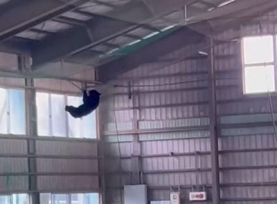 日本山形高中「功夫黑熊」吊單槓 小學被熊破窗闖入