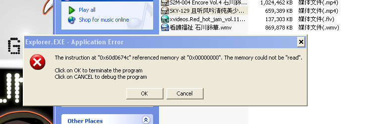 每當我打開 文件夾 如果�面有 mkv flv mp4 avi 這些的時候,系統就會出現上述東西強制把我開的所有文件夾關掉