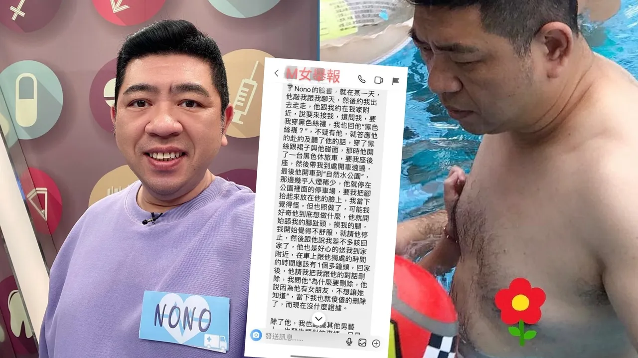 【即時中心/綜合報導】NONO被20女指控性騷性侵後,宣布退出演藝圈,但因遲遲未有道歉行為,讓出面指控他的「小紅老師」相當不滿,今天貼出20女懶人包,「我給你一週的時間當人你不當,那我只好喚醒你沈睡的記憶了。」其中多人指出NONO對絲襪很有興趣,還有人表示,NONO竟舔起她的腳趾頭。