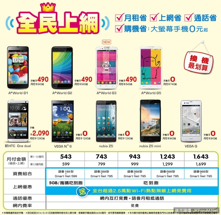 月租省 上網省 通話省 購機省:大螢幕手機0元起