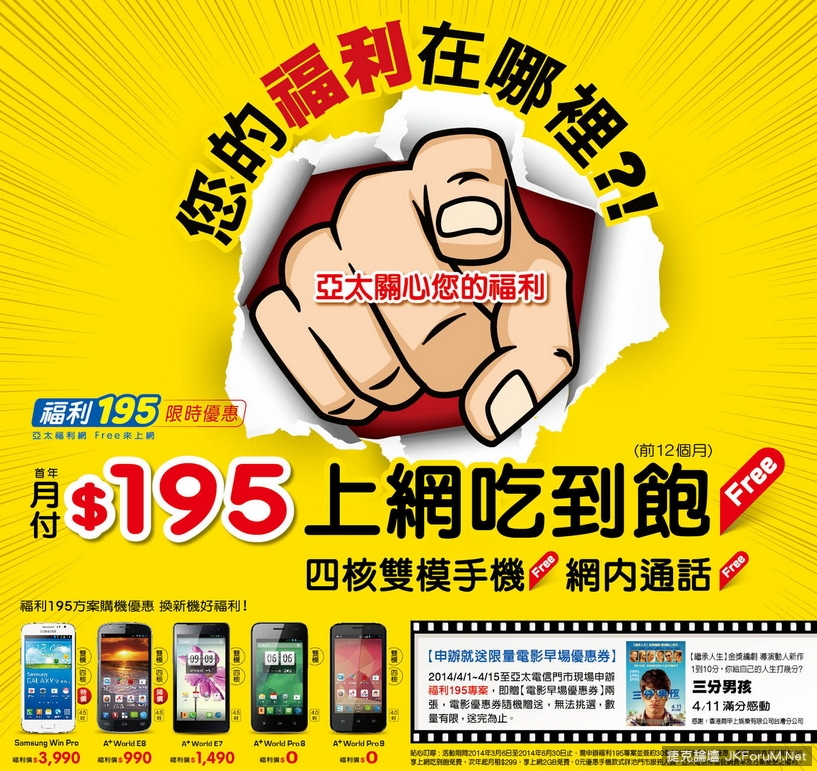 亞太福利195原本的購機優惠就很不錯了,本身就有四核0元機
