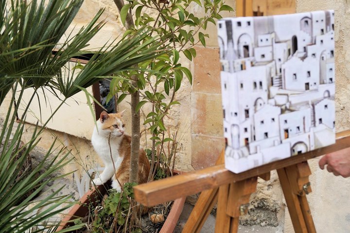 義大利Matera路邊的小貓,旁邊的是當地藝術家聚集所成的繪畫,多麼美好的自由感。
