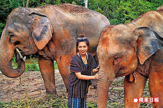 「No Riding!(不騎乘)」是這裡的標語,愛護友善大象則是宗旨。我換上園區準備的棉麻衣,立刻化身一日象伕。這裡的大象多是緬甸象,有的大象是從訓練營被搶救出來的,有的則是大象孤兒,都被集中到這裡妥善照料,再也不必載客或表演特技。