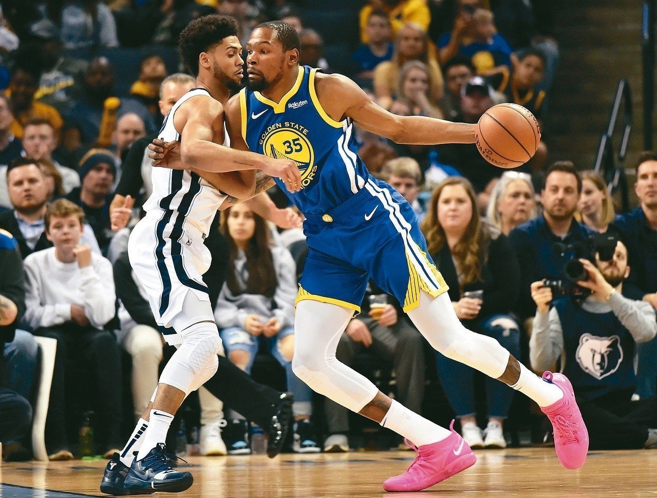 杜蘭特(右)嘗試切入,遭遇對方防守。