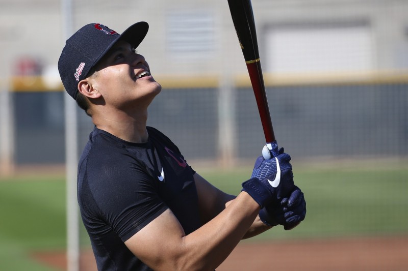 〔體育中心/綜合報導〕印地安人今對上巨人隊的熱身賽,張育成擔任先發第9棒遊擊手,3個打數沒有安打,打擊率跌到.174;吉力吉撈‧鞏冠(朱立人)則在第6局接替蹲捕,2打數敲出1支安打,春訓打擊率.375。