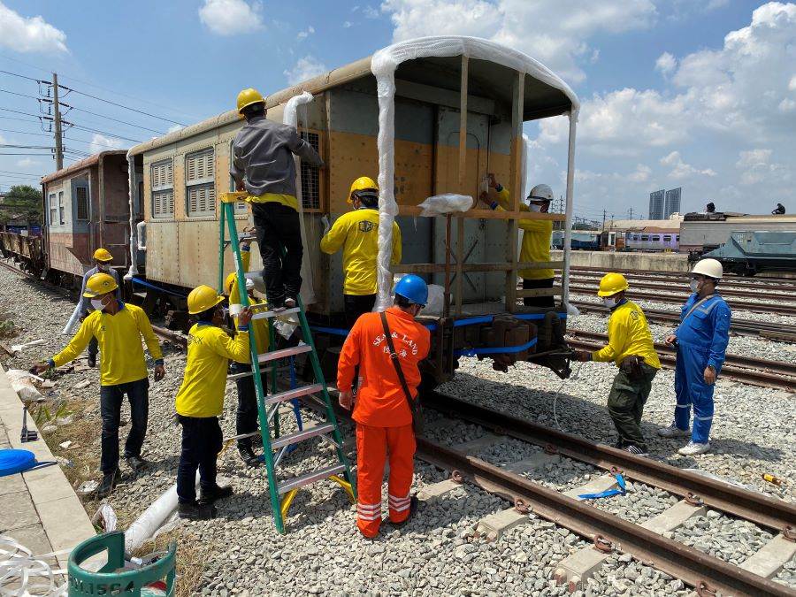 鐵道迷照過來!於泰國服役超過50年的台灣製編號BV.15078守車,3月9日於泰國曼谷Bang Sue邦實機廠包裝啟程運往泰國林查班(Laem Chabang)港口,預定3月下旬返抵基隆港,由國家鐵道博物館籌備處接回典藏。