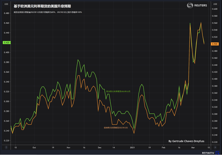 現在市場的利率預估已經調整,預計美聯儲最早2022年底升息;這與美聯儲直至2023年底都維持利率穩定的目標不符。 到目前為止,美聯儲似乎並未受到債券收益率上升的干擾,但可能會覺得是時候反擊那些升息押注了。