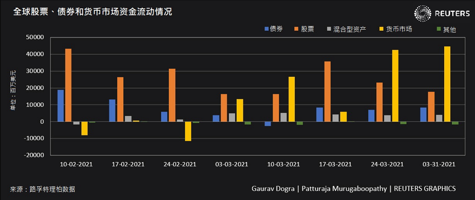 路孚特(Refinitiv)旗下基金分析公司理柏(Lipper)的數據顯示,在截至3月31日當周,全球貨幣市場基金流入447億美元,為12月30日止當周以來最高。