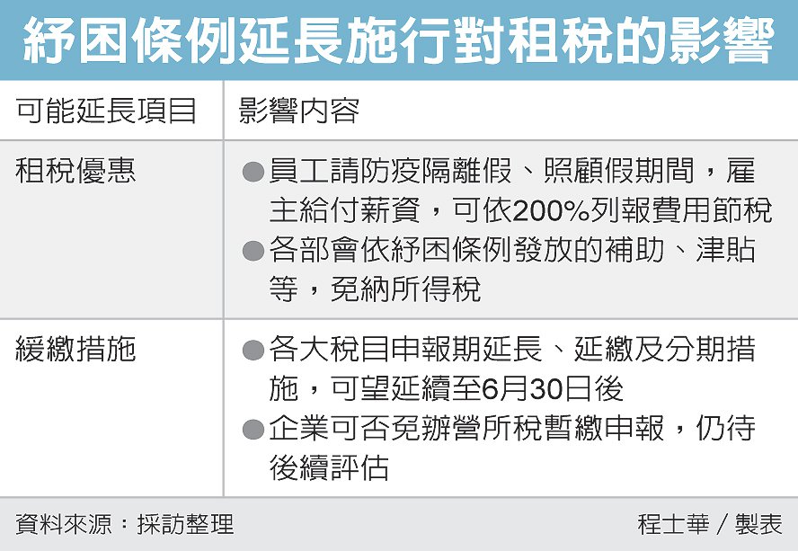 賦稅署指出,其實除了上述紓困條例中明訂的租稅優惠之外,目前財政部提供的許多稅務紓困行政措施,也是經紓困條例授權而訂定的,施行期間有望延長。