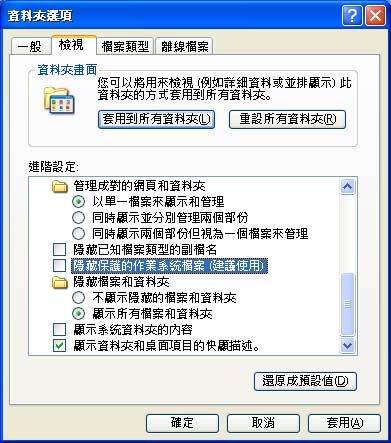 顯示所有檔案和資料夾→按確定後,還是無法顯示所有檔案和資料夾,更改作業被鎖住