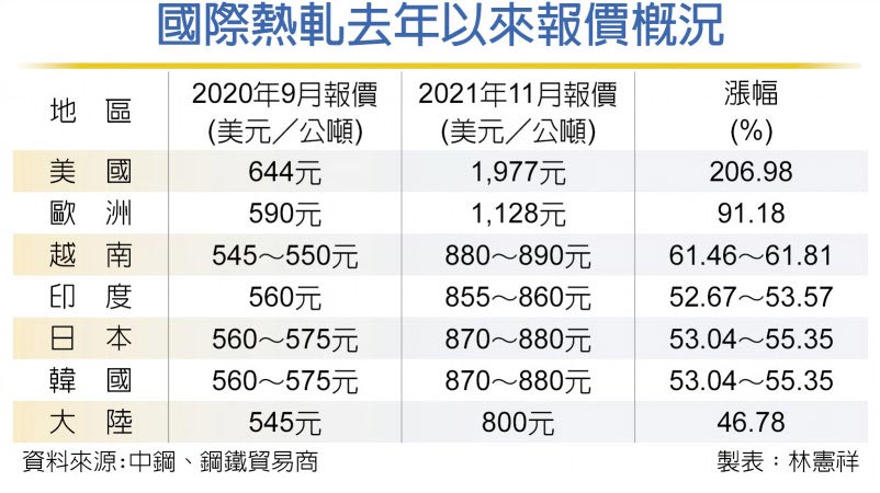 惟近來受大陸打壓鋼價與煤鐵礦原料影響,不僅大陸熱軋流通行情重挫,大陸、印度、日本及韓國等地鋼廠對亞洲市場熱軋報價也受拖累,每公噸下挫到現在最低報價每公噸達800~830美元左右,日、韓鋼廠報價在870~880美元左右。