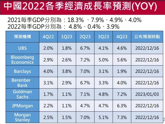 而大陸的放寬防疫政策將會成為全球經濟動能的額外助力,相較於上半年,今年下半年經濟會轉佳。
