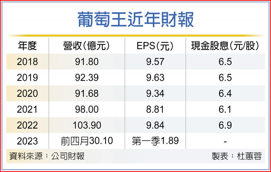 葡萄王第一季合併營收22.2億元、年增8.14%,營業毛利17.8億元,毛利率80.2%,營業淨利4.8億元、年增14.3%,EPS達1.89元。