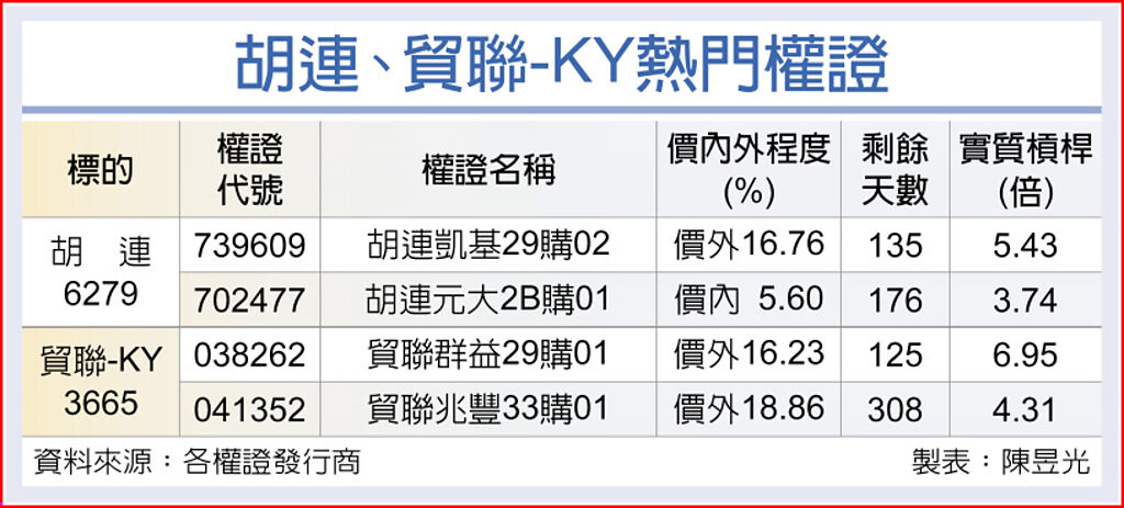 台股9日在權值股撐盤之下,指數上漲28點,連兩日站穩月線,惟中小型題材股湧現高檔獲利賣壓,本土資金籌碼鬆動。法人指出,短線可留意胡連(6279)、貿聯-KY(3665)等今年業績具成長空間,短線股價漲幅並未過熱的個股,可望吸引多方買盤關注。