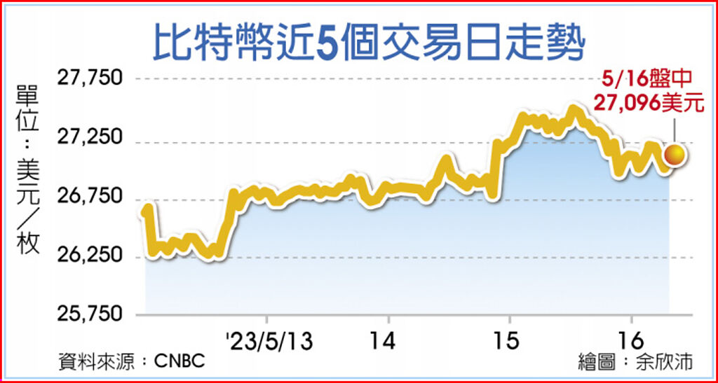 全球第一大加密通貨比特幣16日盤中下跌1%至27,150美元,稍早一度跌破2.7萬美元。比特幣近日頓失上漲動能,分析師認為該通貨今年迄今漲幅超過60%,進入價格修正期相當合理,未來可能下探2.6萬甚至2.5萬美元。全球市值第二大加密通貨以太幣同日下挫逾1%至1,820美元。 |