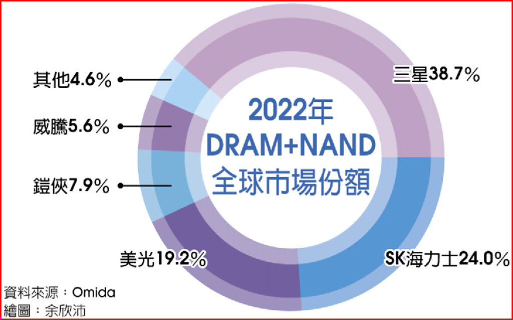 美光在全球DRAM市占率約25%,NAND市占率約12%,依美光2022會計年度年報,中國大陸客戶占美光營收比約11%。若合計香港市場,則拉高至25%以上。