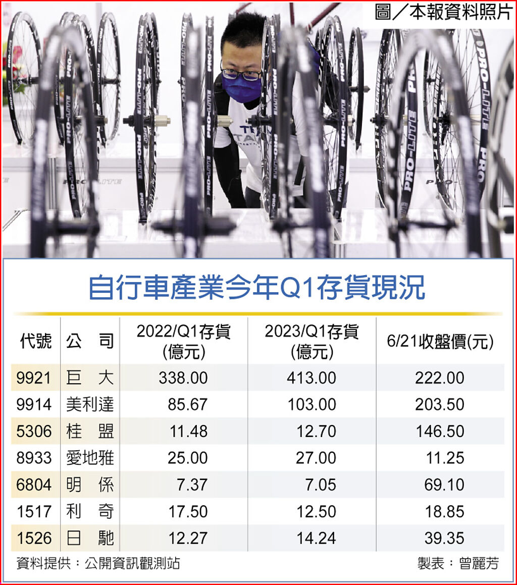 自行車零組件廠方面,包括桂盟、日馳今年Q1存貨均微幅增加,利奇卻有感下降。利奇去年Q1庫存水位原本還在17.5億元,但今年Q1已降到12.5億元,今年前五月預期存貨進一步降到10億元以下。