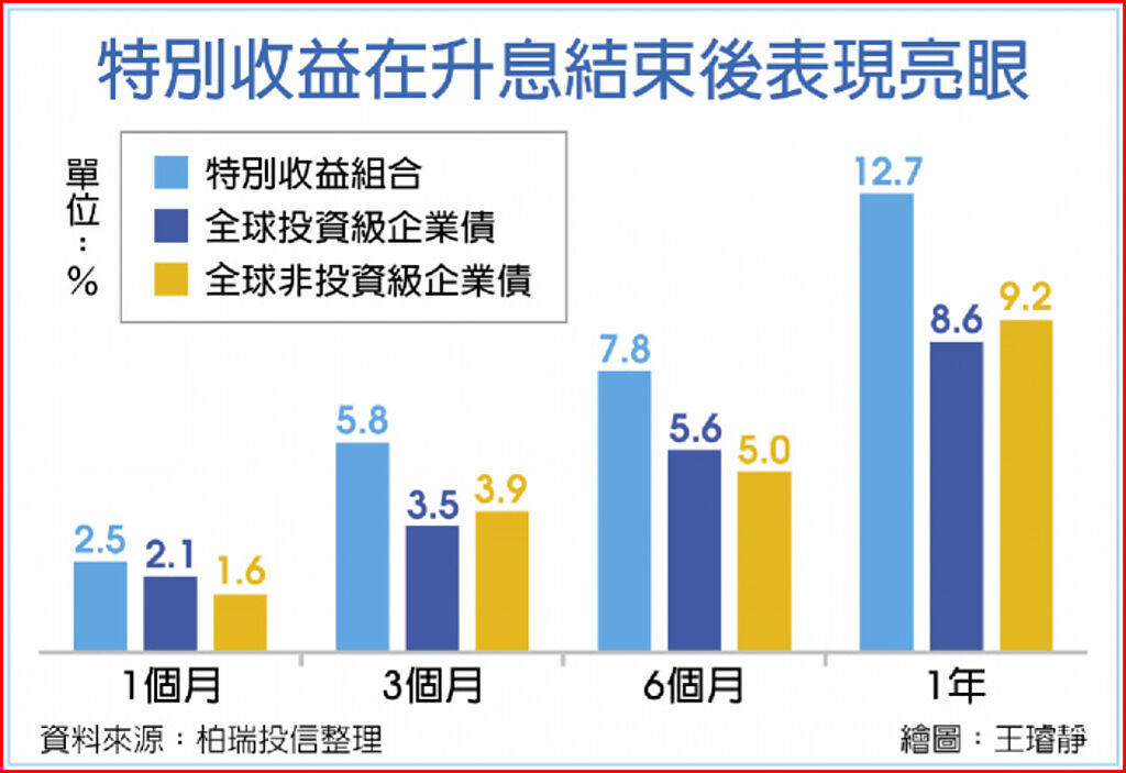 美國聯準會(Fed)貨幣政策保持彈性,加上美國經濟展現韌性、經濟衰退可能延後,今年上半年多數股市表現強勁、債市也微幅上揚。柏瑞投信表示,隨著全球經濟有望溫和成長、貨幣政策進入停看聽的階段,市場表現將回歸基本面。觀察過往升息過後的「特別收益」表現亮眼(見圖),可趁近期漲多回檔修正時中長期布局,掌握升息過後市場彈升契機。