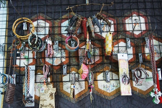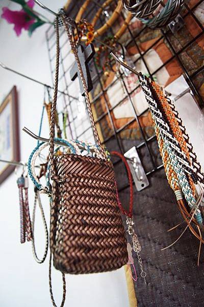 另一面牆上也掛滿了手工編織的飾品,一想到這些都是他們親手製作的物品