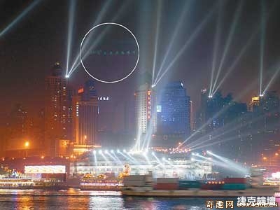 是不是激光燈照射的緣故?昨日,重慶城市照明管理局燈光管理中心趙副主任介紹,前晚6點50分至8點30分,朝天門廣場的“朝天揚帆”燈飾是全面展現的時間,而8點至8點15分就有激光燈表演,“這15分鍾內,有添加燈光效果的圖案和文字。”但從小王等3人拍攝的這13張照片的時間上來看,“UFO”出現的時間是從前晚7點至8點,之后的一個小時中,小王他們就再也沒有拍到它了。