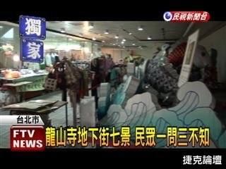 ....台北市龍山寺地下街,7年前落成,當時北市府花了一千多萬,在地下街打造7座人工景觀,還在捷運站張貼宣傳海報,但如今民眾去一問三不知,原來這些景觀根本長年失修,看起來跟廢墟一樣,更離譜的是,市場處每年還編列大筆維修預算,市議員痛批,這些景觀被外國觀光客看到,真的會貽笑國際。