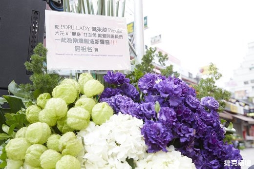 ▲房祖名送花籃祝賀Popu Lady,大元又驚又喜。