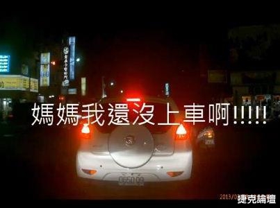不過上傳網友配上包偉銘的經典老歌「跑跑跑」,標題並寫上兒童的心聲「媽媽我還沒上車啊」,讓這畫面更添逗趣。有網友認為這樣實在太危險,「不過聽到配樂,還是忍不住笑出來。」