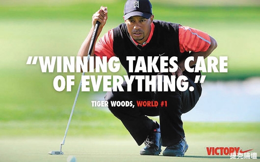 確實,在伍茲昨天重返球王後,今天美國媒體就報導一件引發討論的事,就是長期贊助伍茲在NIKE公司,最近所推出的伍茲平面廣告標語,「WINNING TAKES CARE OF EVERYTHING.」 (贏了,什麼事都可以解決!),這句話引來不少批評。