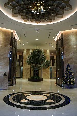 沒有想到真的是碰到寶了,超級華麗的飯店大廳,中間還有一顆樹,真酷
