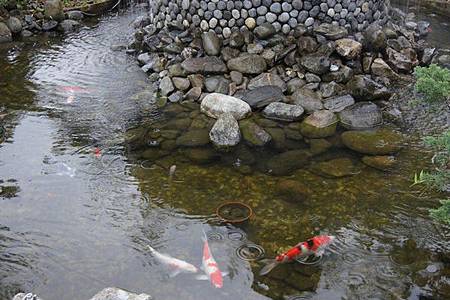 池中的錦鯉,清晰可見,看著他們優然的在水裡悠遊,也讓我們來這裡度假的步調,不知不覺放慢,心情也輕鬆起來了