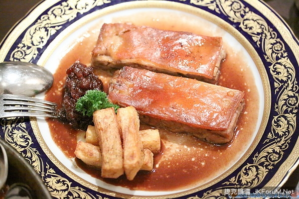 最後最後,這道在上菜之前,熊就已經非常期待(因為西班牙菜的乳豬絕對是重點),這道算是芭朗瑪的招牌菜色,烤西班牙乳豬配蘋果香露伴番茄與香薯(澳門幣295元,約合台幣1121元)。