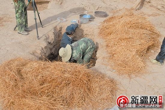 ▲考古人員正在清理麥稈。(圖/新疆網)