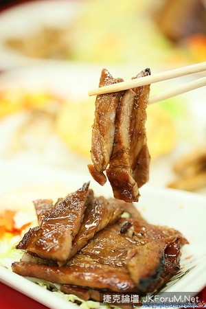 烤肉上面的醬鹹中帶甜,切成小片狀,所以很容易入口,肉質也很嫩不會難咬,大家都覺得還滿好吃的,唯一可惜的就是貴了點。