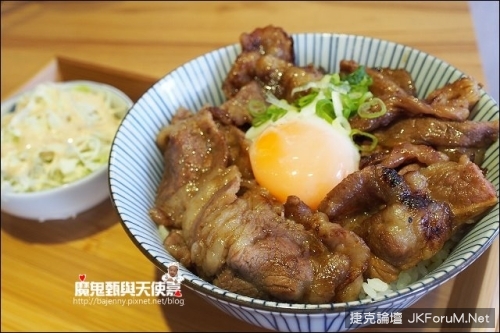 燒豚肉是豬肉,個人感覺是肉烤的太老了,要咬很久~~醬汁倒是調的不錯,許久沒吃丼飯的我,來到江子翠吃丼飯,竟然腦不斷浮現王漾的雞腿飯,懷念啊~跟友人聊起,聽說王樣店址搬到原來的隔壁了,菜單和價格也有調整。