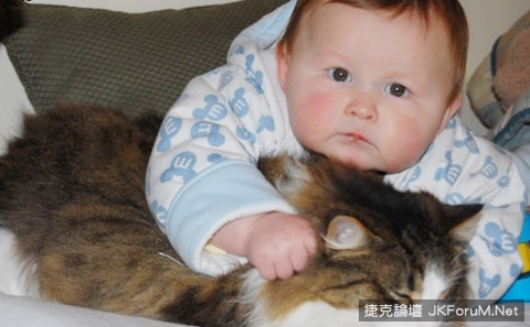 我想,我的堅持並沒有錯。妳並不曾因為貓毛過敏,大家的擔心誠屬多餘。雖然,會爬的妳,已經成為「貓見愁」。妳總想追貓,還想要偷拔貓毛。貓看到妳咿咿呀呀爬過來,總是紛紛閃避。有一次,我看到妳用力的抓住貓尾巴,想要阻止,已經來不及。然而,阿寶只是看著我哀號了一聲,彷彿在說,妳管管這隻小怪獸吧。他知道妳是比他幼小的無知動物,一點也沒打算反擊。我為他的體貼而感動,跟他說了聲:「對不起,她還不懂事,不知道這樣會痛,請原諒啊。」