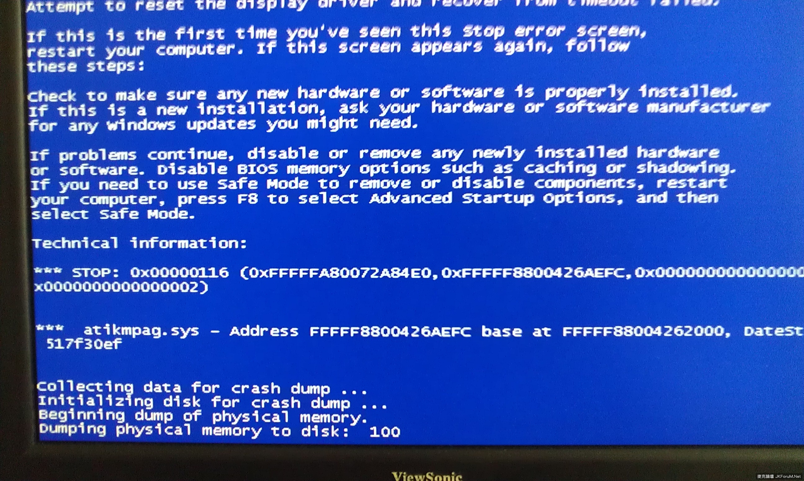 衝突元件是:atikmpag.sys ,表示你的ATI顯卡 驅動要更新了,更新完畢後就可以排除問題啦!