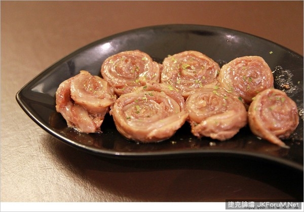 我們等著美食上桌,等到第一樣,就是第一次就讓我喜歡的:【紅燒牛肉花】這第一次來吃就超愛,帶軟筋的牛肉,被捲成花,一口放進嘴超有層次,又軟又嫩,超喜歡!XD