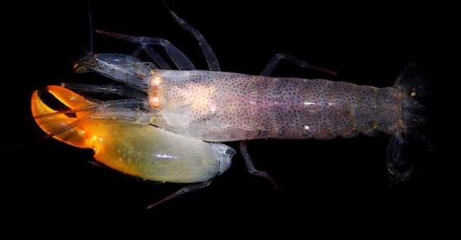 槍蝦(又稱作卡搭蝦)可以說是海底最強大的動物之一了,他有兩個爪子,大的爪子可以製造跟太陽溫度一樣高的噴射水流,當泡泡破掉的時候,會製造出218分貝的音爆,擊倒獵物。