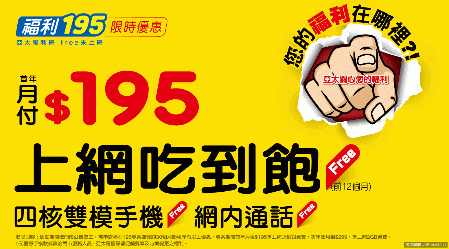 福利195應該會一直延續到亞太開台4G的那天吧!