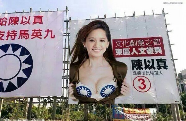 國民黨嘉義市長候選人陳以真因為選舉過程有意避開黨徽,被質疑是在切割國民黨及馬英九,激發嘉義市民「投給陳以真就是支持馬英九」的自主活動。但網路上近來流傳一幅陳以真貼著黨徽的爆乳照,讓人震驚,後來經查,才發現是有網友刻意合成。對此,民進黨候選人塗醒哲則呼籲,民主要理性,不可對人身或圖片做任何變造或侮辱。