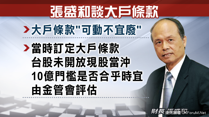 ---財長張盛和:大戶條款可調不宜廢,台股上不去原因?