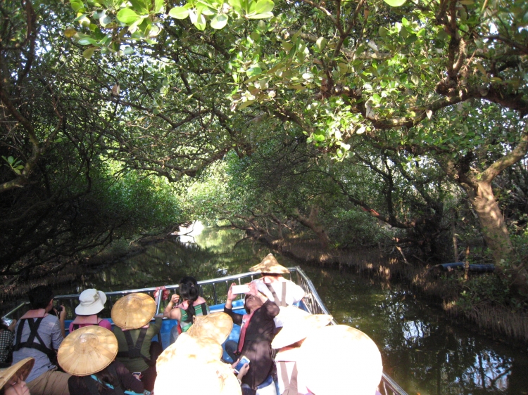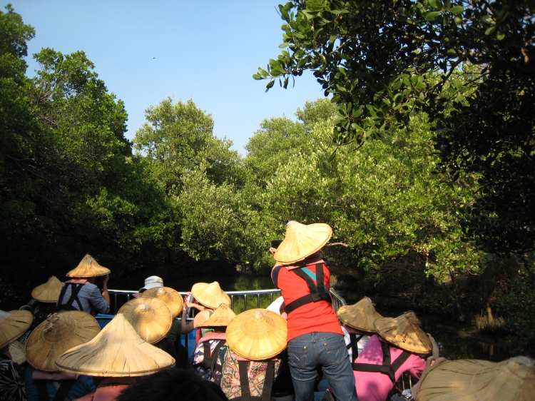 搭乘竹筏欣賞紅樹木/水筆仔/招潮蟹/彈塗魚...等等生態,沿途還有導覽人員在解說生態,唯一缺點就是千萬不要坐中間區域,因為這樣拍照時不管往前還是往後都會拍到人....