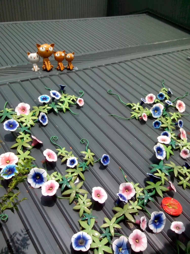 入口處旁的車背後也是馬賽克拼貼的圖案