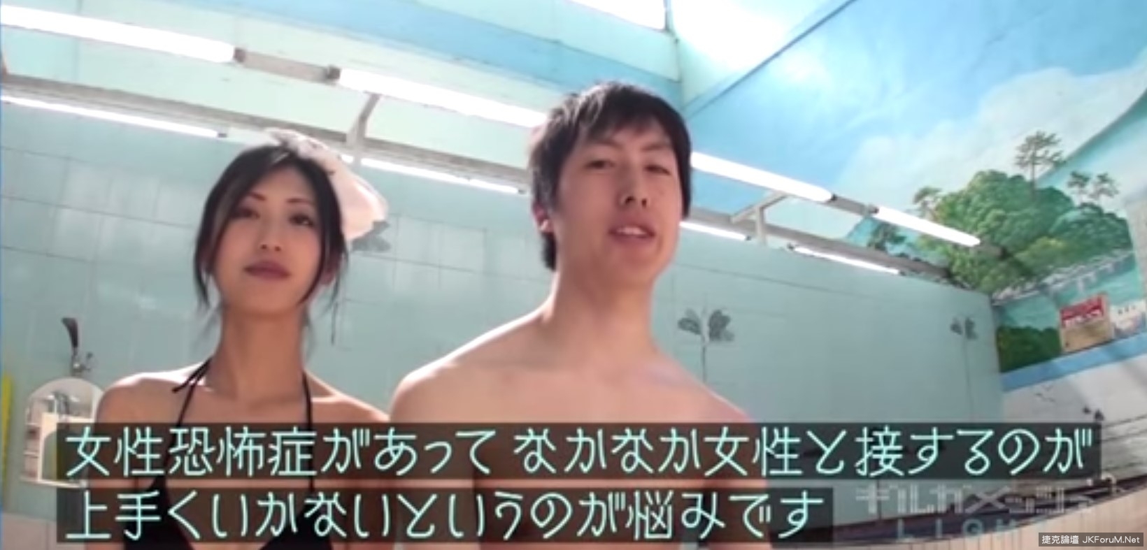 影片裡,節目安排壇蜜聽患有「恐女症」的21歲男大生訴苦,但場景卻是在浴室裡,且她只有穿著超性感的黑色三點式泳裝,而男大生也被要求脫去上衣坐在澡堂裡與她做「口頭」互動,然而她拿著搓澡的沐浴球抹上泡泡,在男方的背後上下遊移,畫面十分限制級。