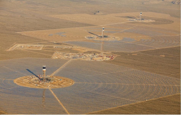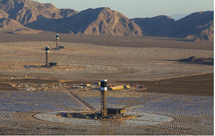 當地時間2015年1月23日,位於美國加州沙漠中的世界最大規模太陽能發電場“艾文帕太陽能發電系統”(Ivanpah Solar Electric Generating System)已經於近日正式投入使用。據悉該太陽能發電場是由美國BrightSource能源公司、NRG能源公司和谷歌公司共同參與的新能源項目,佔地約14.2平方公里,其中設立的超過17.3萬塊太陽能板能夠產生392兆瓦的電量占到美國現有太陽能發電總量的30%,可以滿足附近14萬戶的美國家庭用電需求。