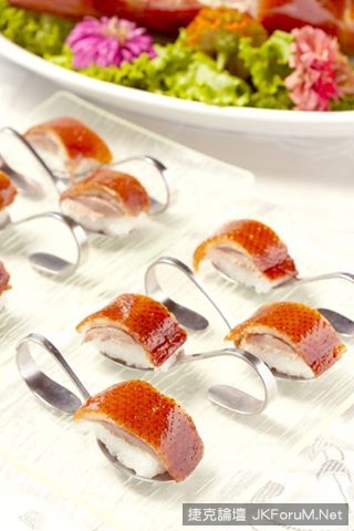 來自宜蘭的櫻桃鴨在擁有豐富水源以及充足空間中所飼養,所蘊藏的油脂十分豐富、肉質細嫩上等,尤其鴨胸部份更是厚實肥碩,相當飽滿,主要外銷作為法式、西餐等料理使用。選擇等級上佳的櫻桃鴨,並以廣東傳統爐燒式的主廚祕製手法,經過24小時的風乾、醃製及燒烤過程,將鮮美肉汁及鮮嫩口感重重鎖在肌理中,最後得以打造出肥碩可口的烤鴨滋味!