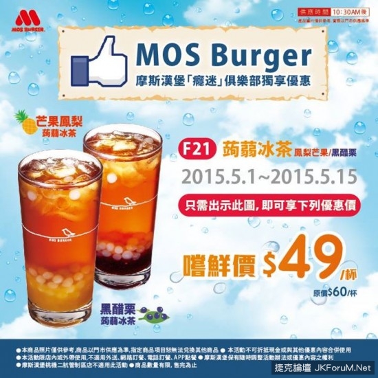 至摩斯出示優惠圖片享蒟蒻冰茶49元