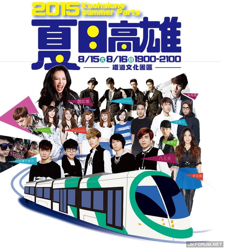 2015夏日高雄活動於8/15、8/16晚上7點,由創作實力派歌手帶來音樂饗宴,邀請金曲獎入圍肯定的MP魔幻力量、魏如萱、HUSH、Gentleman 紳士男孩,還有唱遍各大音樂祭實力備受肯定的樂團宇宙人、那我懂你意思了,以及挑戰歌唱選秀節目的實力派唱將李佳薇、曾沛慈、陳彥允,另有流行樂壇新竄起的新星吳思賢等10組藝人輪番獻唱。活動完全免費、自由入場,歡迎市民朋友一邊聆聽演唱會,一邊享受涼風徐徐的夏日高雄。