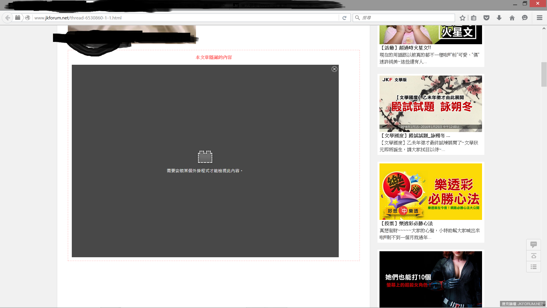 我Mozilla Firefox瀏覽器沒有安裝外掛也可以看,我自己亂用用出來,我輸入你的圖片網址測試,Mozilla Firefox網頁按右鍵出現(檢視原始碼)在752行找到 src=影片網址,把它影片網址https://後面複製,貼到Mozilla Firefox按Enter,在滑鼠按下影片三角形撥放,跳出另一個或兩個視窗廣告快速關閉 ,不然卡巴斯基防毒會偵測廣告病毒 ,我就能看到影片內容 。大家給評分一下,謝謝。